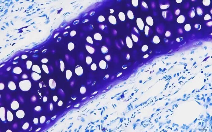 l 结果描述:软骨为紫红色,背景和细胞核为蓝色