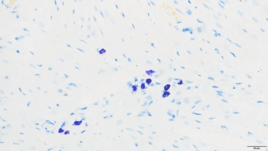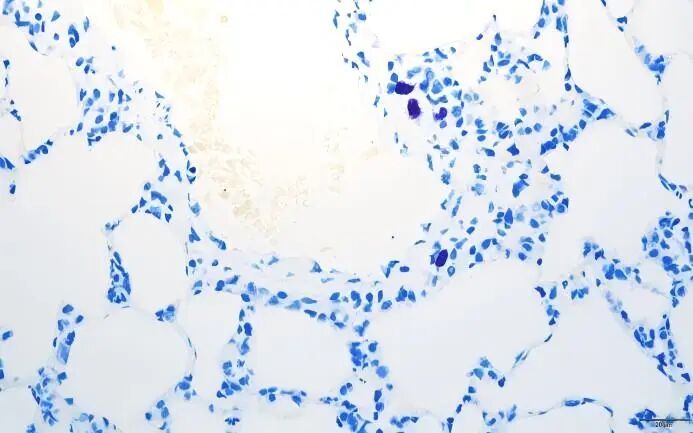 l 结果描述:肥大细胞胞质为紫红色,细胞核为蓝色